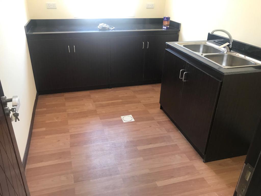 | Floor finish in dry areas: High quality PVC sheet 1.5 mm fixed to 18mm thick cement board floor. MDF skirting 50x12mm will be provided all around. |
